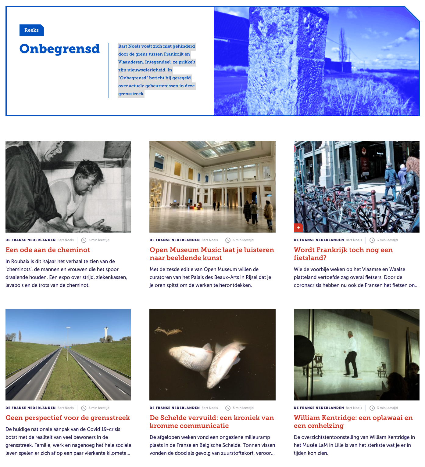 In de rubriek “Onbegrensd” bericht Bart Noels geregeld op de website De Lage Landen (Ons erfdeel) over actuele gebeurtenissen in de grensstreek. De serie is ook te lezen op ‘Les Plats Pays’ met de titel ‘Sans bornes’.